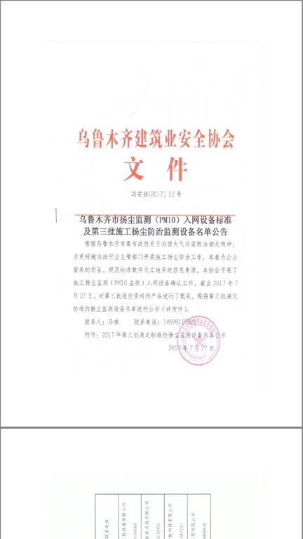 热烈庆祝我司入围新疆乌鲁木齐第三批工地扬尘监测设备供应商名单